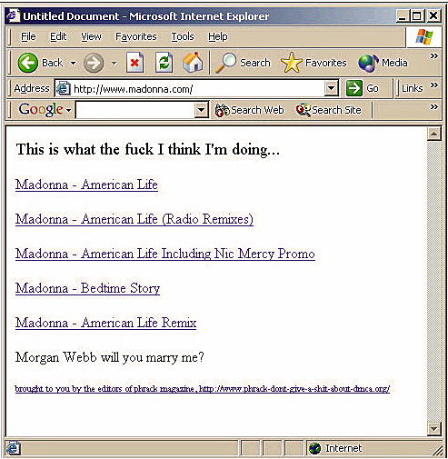 كانت ردة فعل بعض الجماهير الذين اعاقتهم هذه الملفات الوهميه من الوصول للعمل اختراق موقع مادونا الرسمي واضعين لسؤالها اجابه و تاركين اغاني الالبوم كاملة لمن رغب بتحميلها من موقعها مباشرة .