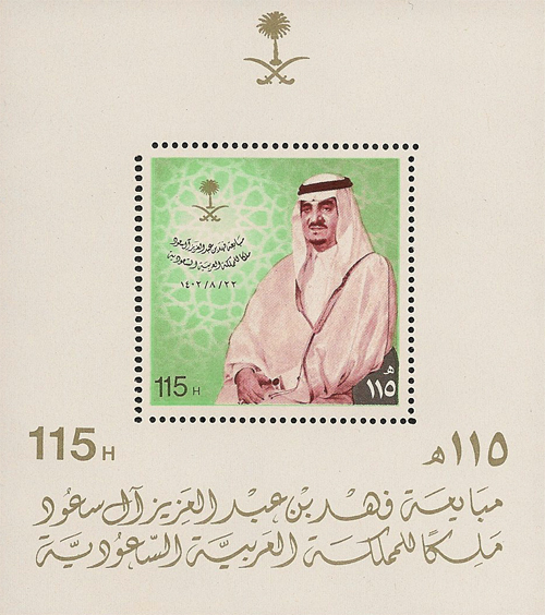 صدر هذا الطابع بتاريخ 22 شعبان الموافق 14 يونيو من نفس العام وكان عنوانه ( مبايعة فهد بن عبدالعزيز آل سعود ملكا للمملكه العربيه السعوديه ) وجدت الطابع مؤخرا في مزاد واشتريته .