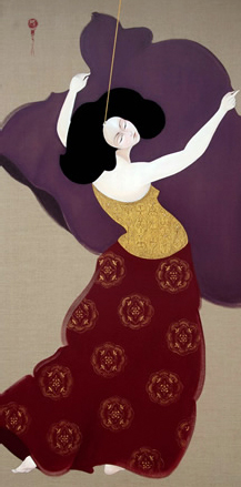 الاحتمالات كثيره ولكن لا شئ اكيد سوى ان هذه الارواح مهما روحت عن نفسها بالغناء او العزف فهي تعيش حزنها وربما تغنت به ، لذا احببت هذه اللوحة كثيرا وتخيلت المكان الذي ساضعها به ايضا ، فهي كبيرة الحجم بارتفاع متر و 33 سم و عرض مترين و 19 سم ، حين اتصلت لمعرفة اي تفاصيل عن هذه اللوحة رغبة باقتنائها اكتشفت ان اغلب رسومات هذه المجموعة كاملة قد نفذت وتم بيعها !