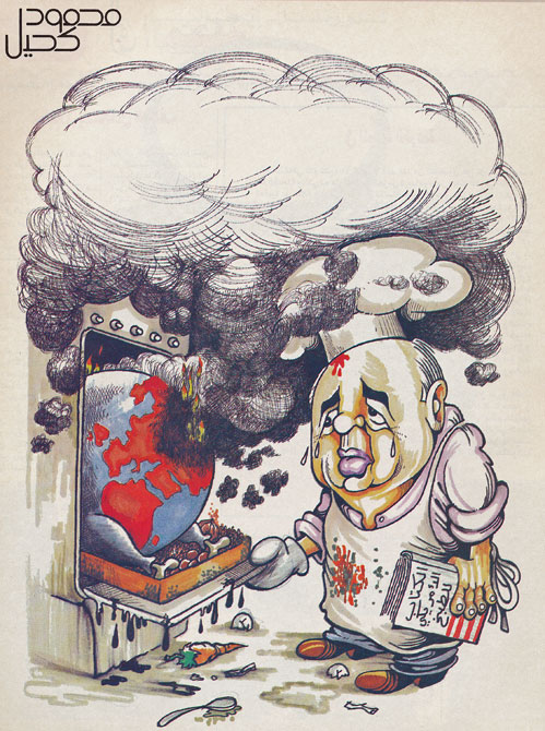 في فترة التسعينات الميلاديه وبالتحديد عام 1990 ميلاديه يوم 3 ابريل – الموافق 8 رمضان 1410 هجريه – نشر هذا العمل للراحل محمود كحيل كالعاده في الصفحة الاولى من مجلة المجلة ، ونرى به الكرة الارضية مشتعلة وعلى الاخص اوربا الشرقية .