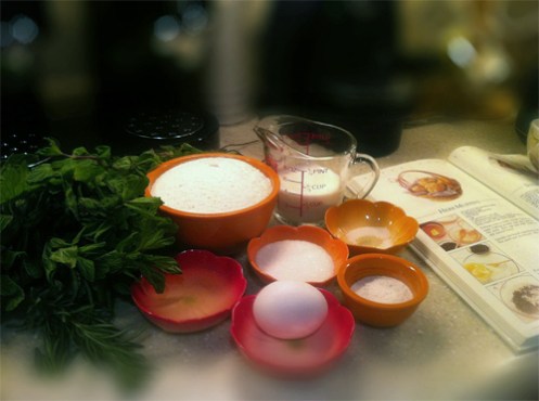 كل ما احتجته كوبين من الدقيق الابيض ، ملعقتا طعام من السكر الناعم ، ملعقة طعام من بيكنغ بودر ، رشة من الملح ، بيضة واحده ، نصف كوب من الحليب الكامل او القليل الدسم ، ملعقتا طعام من الزبدة التي تم اذابتها استبدلتها بملعقتا طعام من الزيت النباتي ، كوب من الاعشاب العطريه يتم فريها بشكل صغير جدا .