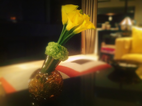 زهور الاوركيد الأصفر في غرفة المعيشة ، تقف بعنقها الطويل لترقب قدومك وتنتظر لقاك لترى لأجل  من قطفت من براريها و وضعت هنا .
