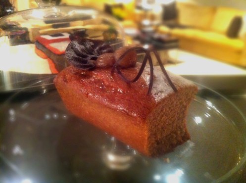 كعكة الكستناء طهيت بعنايه واتزان ، واعتزلت ضجيج الشوارع والمحلات ، لتتمدد داخل حافظة زجاجيه تنتظر الغريب القادم لتحلى ايامه وتبهج عودته .
