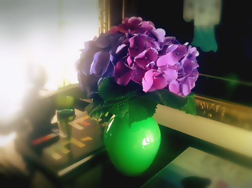 زهرة الهايدرنجا تقف بالمنتصف ما بين الوردي والبنفسجي ، تبقى متعددة الدرجات مختلفة اللون ، لكنها تعبر عن شعور صادق ثابت لا يتبدل او يتلون مهما تبدلت المواقف واختلفت الحالة النفسيه من لحظة لأخرى .
