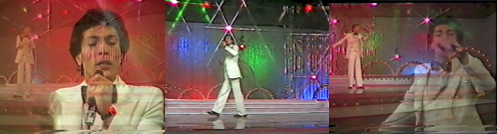 ايضا لمعان الضوء في الخلف و تراقصه ، و تلك الوصلة العريضة السوداء في سلك المايكرفون و التي توصل السلكين معا ، كل هذه التفاصيل كنت و ما زلت احبها و تذكرني بزمن احبه و استمتعت به ، كما تذكرني تلقائيا ببعض الاغاني الاجنبيه المصورة و التي انتشرت في نهاية السبعينات و اوائل الثمانينات و بها يغني الفنان بهدوء و بطريقة ” البلاي باك ” ويتمايل .