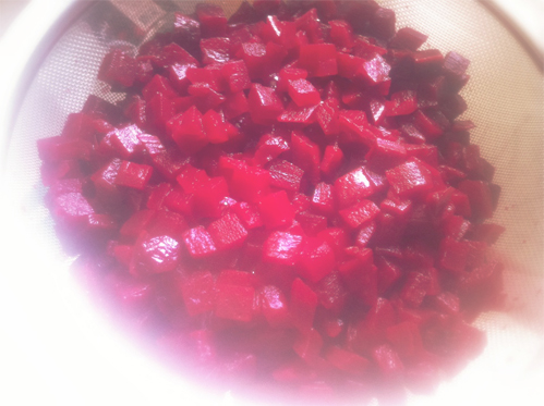 علبتان من البنجر المعلب المقطعة مكعبات ( تقريبا مقدار كوبين ، يوجد نوع اخر مقطع شرائح ممكن استخدامه او حتى الطازج ، ما تراه مناسب لك  ) .