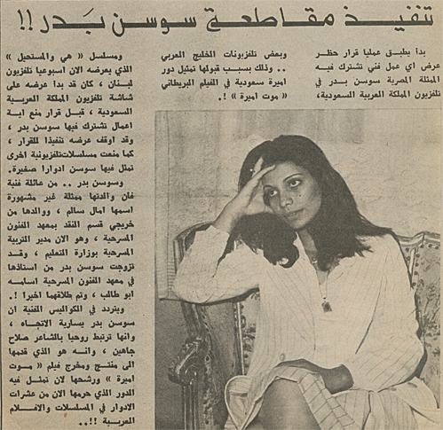 في هذا العمل قام الممثل المصري باداء دور احد كبار امراء العائلة الحاكمة ، كما قامت الممثلة “سوزان ابو طالب ” المعروفة اليوم بأسم ” سوسن بدر ” بدور الأميرة ، مما دفع التلفزيون السعودي في عام 1980 و بالتحديد في نهايات شهر مايو الى إيقاف مسلسل مميز للفنانة صفاء أبو السعود ” هي و المستحيل ” وعدم استمراره بعد بدء عرضه لكون سوزان قد شاركت به بينما أستمر عرضه في تلفزيون لبنان الى ان تتضح الصورة .