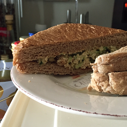 بالامكان أن تختار الخبز الذي تود ، اخترت توست كامل الحبوب ثم تذوقتها و أحببتها كثيرا ، ايضا ممكن ان تضيف لها شطة “ كريستال “ لنكهة خاصة أو التباسكو الأخضر .