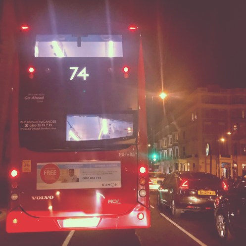 و كان العمر باص لم يتوقف،كثير المحطات، و مرتبطه انطلاقته بالرقم ٧٤، أرهقته الأضواء، و أتعبته الطرق، و انعكاس وجوه ركابه و العابرين على الزجاج و المرايا، فتداخلت حكايته مع باقي الحكايا، يسرقه الطريق و الذكريات الغافية في تلك الزوايا.