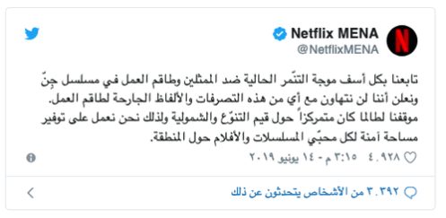 – لا أفهم المجتمع الذي يشاهد “نتفلكس” عادي ثم يصدم بعمل مثل هذا !؟