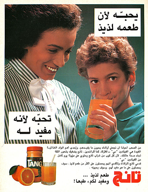 هذا البوستر الأعلاني نشر في احد الصفحات الداخلية لمجلة سيدتي عام ١٩٨٨ ميلاديه ، لمحبي المشروب و لجروب تانج في فيس بوك اضيف هذا الموضوع .
