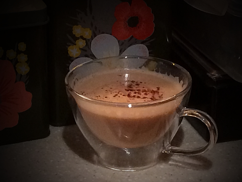 ٢٠٠ مليلتر / ثلاثة أرباع الكوب حليب بارد و يفضل كامل الدسم أو أي نوع آخر قد تم تجريبه و يعطي رغوة خفيفه عند الغليان .